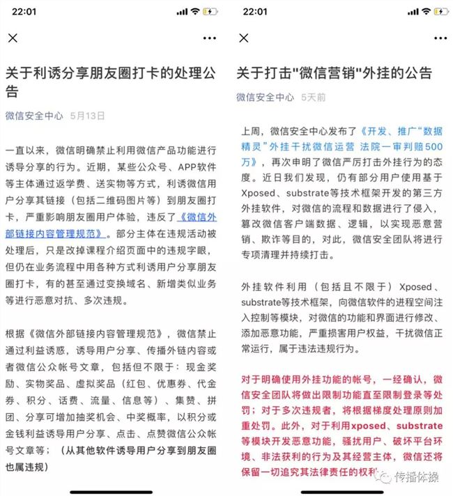 5 月中旬,微信官方發(fā)文重申對裂變營銷的封殺, 6 月中旬,微信發(fā)出公告打擊營銷外掛,整個線上教育行業(yè)哀鴻遍野。不少人也會發(fā)現,使用相關微信自動化工具軟件的賬號更容易被封號了。