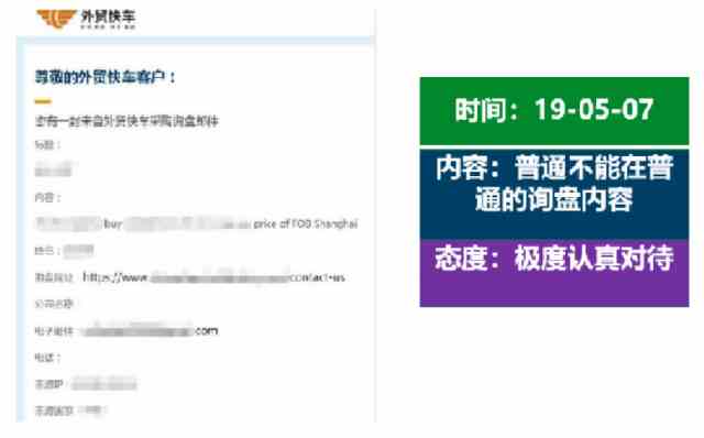 2019年5月7日,通過外貿(mào)快車app“即時通訊”功能收到了第一次詢盤。可以看到的是對話內(nèi)容極為普通,但對于張總而言,認真對待每一封詢盤都是他第一時間需要做的。