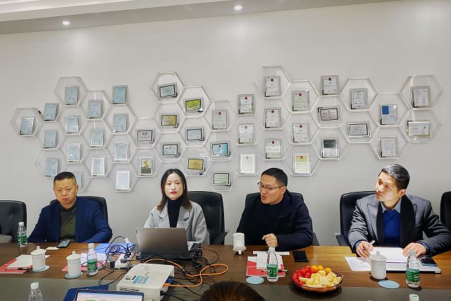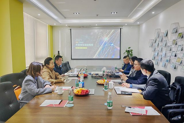 隨后,杭州市富陽區(qū)商務(wù)局電子商務(wù)科的領(lǐng)導(dǎo)與企業(yè)代表,在公司會議室展開洽談。會上,首先通過簡短的視頻介紹了思億歐的整體情況,接下來由培訓(xùn)部經(jīng)理周萍女士,從外貿(mào)快車的發(fā)展歷程、運作模式、創(chuàng)新開發(fā)、客戶反饋等方面詳細介紹了外貿(mào)快車,同時著重介紹了最新上線的外貿(mào)快車直播系統(tǒng),來訪領(lǐng)導(dǎo)們對外貿(mào)快車的創(chuàng)新型直播系統(tǒng)也表示了贊賞。期間,企業(yè)代表與何總、徐總展開友好交流,雙方在許多理念上互通有無,為外貿(mào)快車更好的發(fā)展提供了寶貴意見。