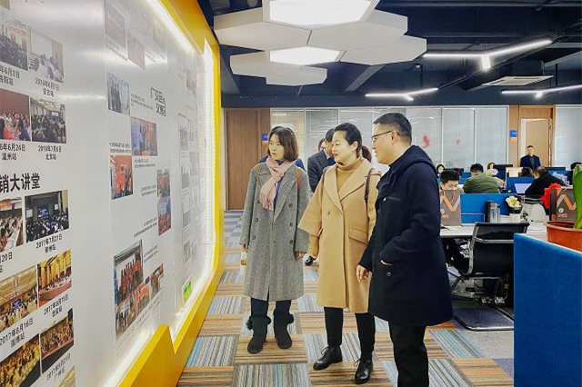 2021年1月28日(周四)上午,杭州市富陽區(qū)商務(wù)局電子商務(wù)科科長張帆、富陽區(qū)商務(wù)局電子商務(wù)科楊一然、企業(yè)代表浙江珍琦護理用品有限公司國貿(mào)部經(jīng)理張冰一行人到訪我司參觀思億歐及外貿(mào)快車項目,思億歐董事長何旭明先生、思億歐高級副總裁徐蘇源先生、思億歐培訓(xùn)部經(jīng)理周萍女士熱情接待。