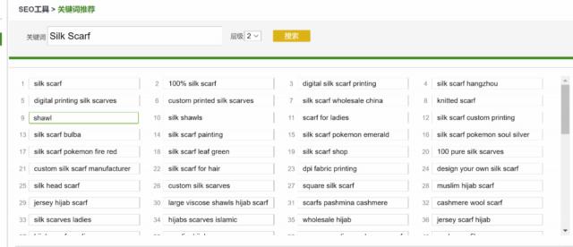 (對全球絲綢產(chǎn)品關(guān)鍵詞進(jìn)行挖掘)