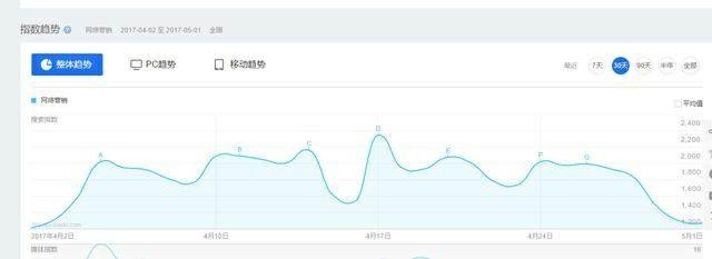 在輸入欄輸入“網(wǎng)絡(luò)營(yíng)銷(xiāo)”,然后點(diǎn)擊查看指數(shù),就可以看到以下結(jié)果: