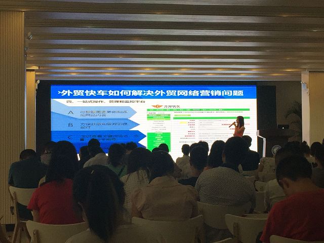 下午的跨境電商主題論壇,邀請到了臨安200多位外貿(mào)企業(yè)代表參加,環(huán)球市場、思億歐外貿(mào)快車、浙江點庫電子商務(wù)、杭州創(chuàng)夢谷、321電商學(xué)院分別作為服務(wù)商代表發(fā)表了精彩的專題演講。思億歐市場總監(jiān)、外貿(mào)快車高級產(chǎn)品講師付軼女士分析了當(dāng)前外貿(mào)企業(yè)面臨的“互聯(lián)網(wǎng)+”思潮,倡導(dǎo)外貿(mào)企業(yè)應(yīng)主動擁抱互聯(lián)網(wǎng),變“互聯(lián)網(wǎng)+”為“+互聯(lián)網(wǎng)”,以企業(yè)自身生意為核心,通過“+互聯(lián)網(wǎng)營銷”“+互聯(lián)網(wǎng)渠道”“+互聯(lián)網(wǎng)資本”等方式,實現(xiàn)資源優(yōu)化配置的目的。通過對外貿(mào)快車產(chǎn)品的介紹,思億歐為廣大以B2B模式轉(zhuǎn)型跨境電商的臨安外貿(mào)企業(yè)帶來了新的思路-----企業(yè)官網(wǎng)才是真正屬于企業(yè)自己的、最意義重大的B2B平臺。