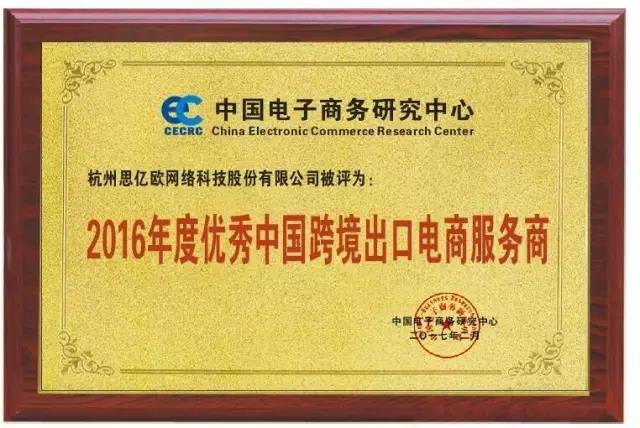 思億歐榮膺2016年度優(yōu)秀中國(guó)跨境出口電商服務(wù)商