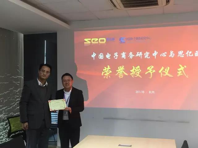 2017年2月28日,思億歐攜外貿(mào)快車產(chǎn)品正式獲得由中國(guó)電子商務(wù)研究中心頒發(fā)的“2016年度優(yōu)秀中國(guó)跨境出口電商服務(wù)商”榮譽(yù)稱號(hào)。同時(shí),中國(guó)電子商務(wù)研究中心終身聘請(qǐng)思億歐董事長(zhǎng)何旭明先生為“中國(guó)電子商務(wù)研究中心研究員”。