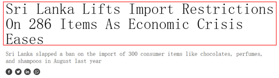 斯里蘭卡取消對(duì)286種物品的進(jìn)口限制
