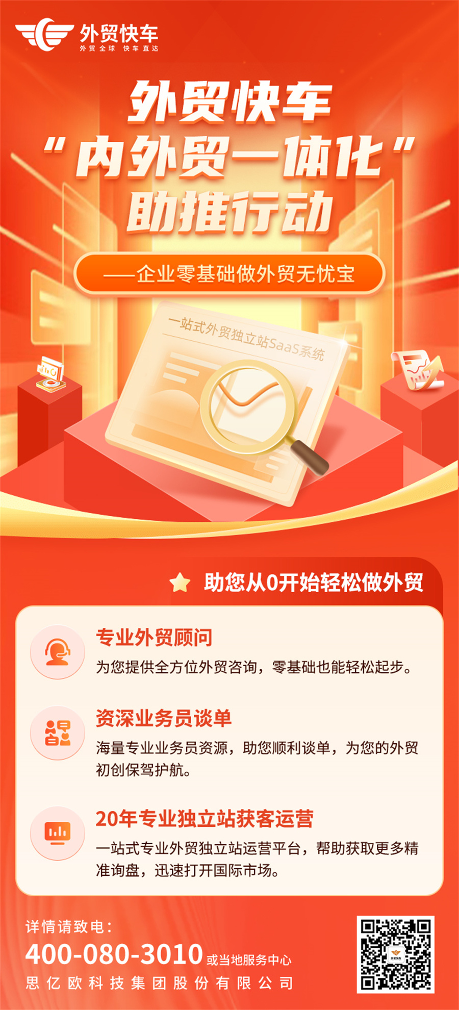思億歐20載專注獨立站SaaS系統(tǒng)研發(fā)與運營,以社會責(zé)任為己任,積極響應(yīng)國家政策。旗下產(chǎn)品外貿(mào)快車持續(xù)投入,為外貿(mào)企業(yè)創(chuàng)新發(fā)展提供堅實支持。在新的一輪市場博弈來臨之際,外貿(mào)快車會作為外貿(mào)企業(yè)的得力助手,秉承著“精準(zhǔn)幫扶”的理念,幫助外貿(mào)企業(yè)勇敢突破各類市場障礙。