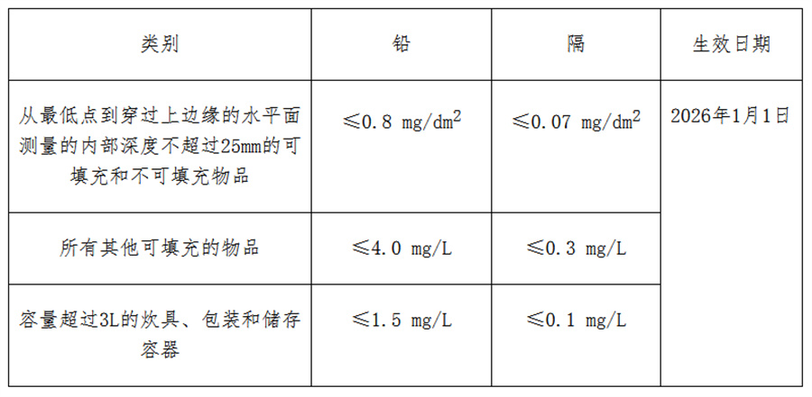 制定了鉛和鎘遷移的測(cè)試條件和要求;