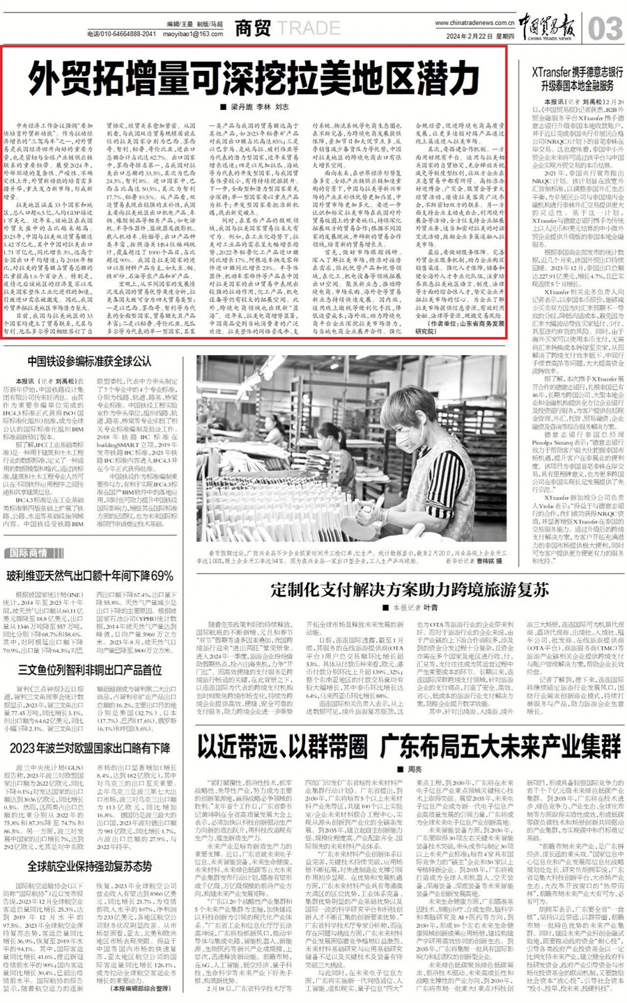 面向未來,在世界經(jīng)濟形勢復雜多變、全球產(chǎn)業(yè)鏈供應(yīng)鏈加速重構(gòu)的背景下,中國與拉美等新興市場的產(chǎn)業(yè)互補性優(yōu)勢更加凸顯,中國外貿(mào)市場更加多元。要進一步認識和標定拉美市場在我國對外貿(mào)易版圖上的重要地位,持續(xù)深化拓展雙方的貿(mào)易合作;根據(jù)不同國家的發(fā)展現(xiàn)狀,開辟新的貿(mào)易合作領(lǐng)域,培育新的貿(mào)易增長點。
