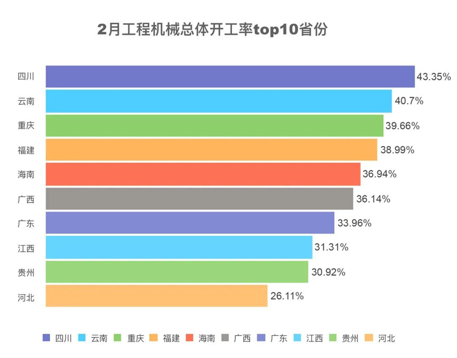 2月,北京實現(xiàn)壓路機作業(yè)量同比增長153.40%,全國第一;河北履帶起重機作業(yè)量同比增長23.70%,全國第一。