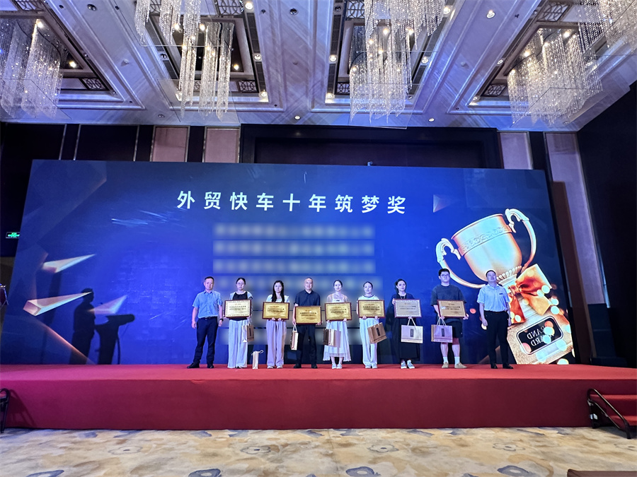 現(xiàn)場(chǎng),嚴(yán)家德先生為獲獎(jiǎng)企業(yè)頒發(fā)了“外貿(mào)快車最佳操盤(pán)手”、“外貿(mào)快車訂單王”、“外貿(mào)快車外貿(mào)新勢(shì)力”、“外貿(mào)快車十年筑夢(mèng)獎(jiǎng)”等獎(jiǎng)項(xiàng),旨在感謝各位合作伙伴對(duì)外貿(mào)快車的信任和支持。
