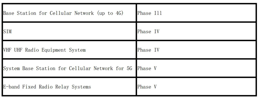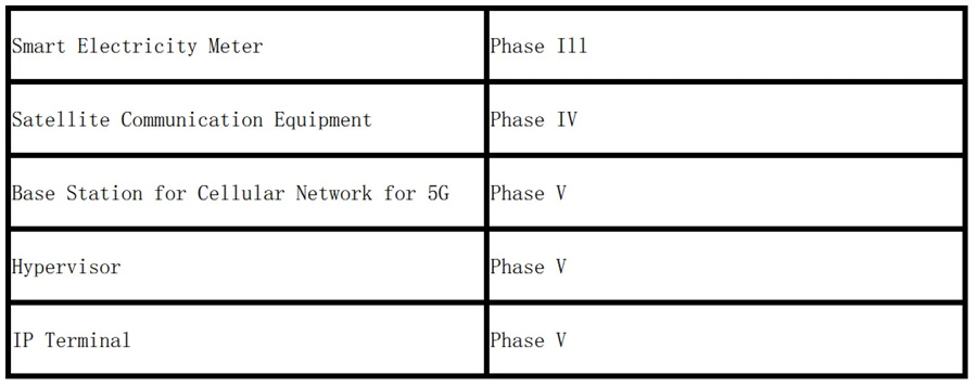 2、對(duì)于第三/四/五批強(qiáng)制性認(rèn)證產(chǎn)品中的如下5類產(chǎn)品,非接壤鄰國(guó)的ILAC報(bào)告接受日期推遲至2024年9月30日: