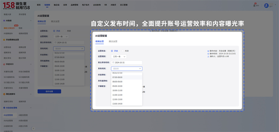 強(qiáng)勢進(jìn)階!158云系統(tǒng)AI自動化營銷功能再升級,企業(yè)短視頻營銷更專業(yè)