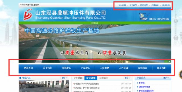 確定好標(biāo)題和描述后,接下來就是導(dǎo)航的布局,很多企業(yè)站都犯著一個(gè)通用的毛病,大多都是模仿別人的網(wǎng)站所導(dǎo)致的吧,一個(gè)網(wǎng)站若是沒有獨(dú)特性,那么也總是追著別人后面跑,下面來看一看【波形護(hù)欄板】首頁的企業(yè)站如何布局導(dǎo)航的,如圖所示: